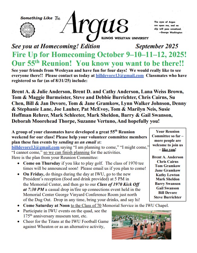 1970 homecoming newsletter pg 1 Published September 11, 2025 at 652 × 839 in Class of 1970 Newsletter Homecoming Edition!