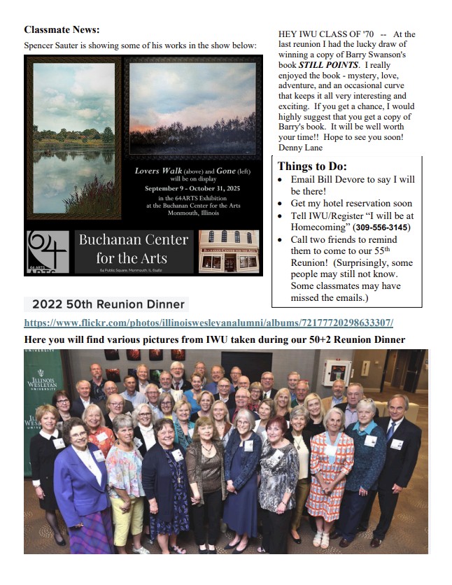 1970 homecoming newsletter pg 3 Published September 11, 2025 at 646 × 836 in Class of 1970 Newsletter Homecoming Edition!