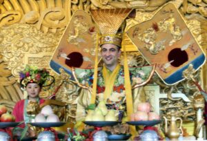 his head is. He is the statue I collect since I think he is fiercer than Tommy Titan, and I’d like to use the GG as the IWU mascot. He was a general in the period of the Three Kingdoms, and he was slain. His head was sent to the emperor at Luoyang, who attached a wooden body (!) and buried him with honors. There is now a temple on the spot that dates (in its present form) from the Ming dynasty (1500s),