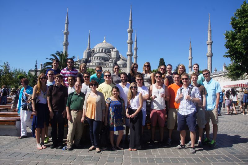 Spain, and the physicians to the Sultans were usually Jewish), it’s sometimes difficult to remember how rich the country was—though it is easily remembered how powerful it was. Suleyman’s defeat at the gates of Vienna marked the westward limits of Turkish conquests, but I’ve seen battlefields in Poland and Russia, and indications of the occupation of the Balkans, Greece, and Hungary that are neither forgotten nor forgiven. We will be seeing the Topkapi Palace tomorrow, which should give our students some insight into what being rich meant in the 16th and 17th centuries. It helped Professor Pana and I to understand it when we went to a “traditional restaurant” whose recipes were based on the cookbook of Mehmet II. As we sat in the shadow of Hagia Sophia, we ate like a king for a night. We’ve set up a “farewell dinner” in a similar restaurant tomorrow, near the Chora Church with its world famous mosaics.