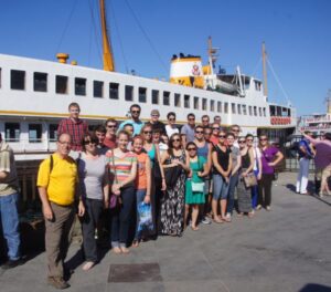 All three of the sites we visited reflected the past of the city. The visit to Aya Sophia represented the oldest site. The church, built on a previous church site, was constructed in the 6th century during the reign of Justinian, who was responsible for many of the great works (and great expenses) of the Byzantine Empire; during his reign, the boundaries were at their greatest, including the reconquest of the Western Empire, i.e., Rome. Justinian (and his consort, the one- time courtesan, Theodora) were, for example, builders of the wonderful chapels at Ravenna, Italy, with their likenesses. Justinian’s efforts in Istanbul, however, led to the creation of the
