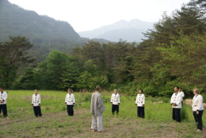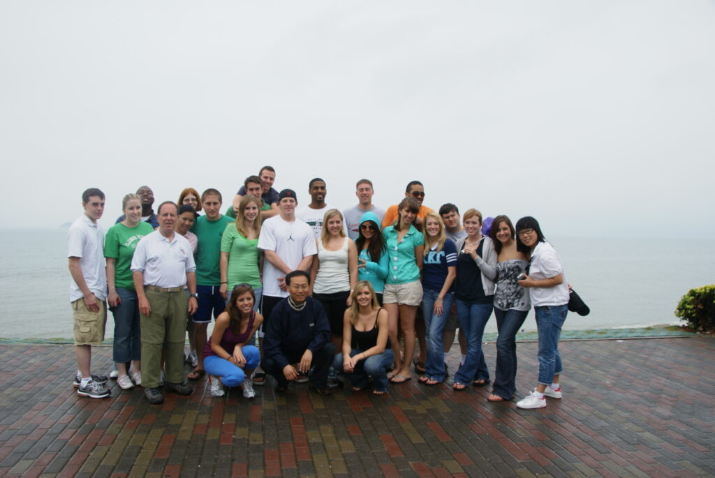 We went from Ulsan up the mountainous eastern side of the peninsula to the temple, which I mentioned was going to be like Scout camp. Indeed it was. When we got there, we put on our uniforms, went to our cabins, had vespers, and merit badge-type work. We learned about Buddhism through a silent walk (like the ones we do at camp, but I’d never let you walk barefoot like we did) contemplating ourselves. The monk who led us was as relaxed as I’ve ever seen anyone, and kept stressing inner peace; “control yourself and you can manage others,” was his advice to the business students. We continued with the Buddhist badge for meditation. Sitting lotus position in yoga for 3 minutes challenges–we sat for 30 minutes (leading to my conclusion that I could be a Buddhist, but it’d be tough to be a monk–he sits for 8 hours a day!).