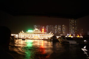 I spent the last night in Hong Kong walking the waterfront facing the island of Hong Kong with my friend until it was time to take the ferry (did I tell you that as a concessionaire–British for Old Guy–I get to ride the ferry for free and get half price on other transportation–and have a separate channel through customs!). Next time more time! Incidentally, Britain acquired Hong Kong in stages; the island ceded in perpetuity in 1842, the Kowloon peninsula surrendered in 1860s, and the New Territories, loaned for 99 years in 1898. The end of the lease for the New Territories was what triggered the return of Hong Kong.