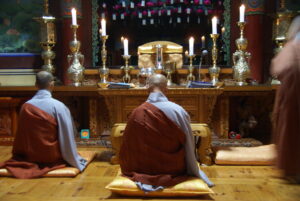 We’re on our way to a monastery, which sounds like Scout camp. We eat like monks, dress like monks, meditate like monks, and sleep like monks–to bed at 10, up at 3.