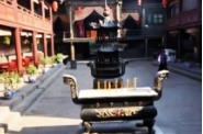 The governor could have a dragon wall because he was the thirteenth son of the Emperor. The wall was moved to a former temple when the palace was torn down years ago, but the wooden frame of its replacement is underway, in a swath of buildings cleared to make the “new old” city.