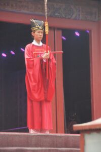 Our day began with a made-for-tourist celebration that consisted of young ladies on parade dressed in Qing costumes, imitating women with bound feet (some emperor liked it, so for centuries rich women broke the toes of their daughters to make them more attractive—only peasant women had regular-sized feet). The practice was not banned until the 20th century. The ladies were followed by jugglers, and the festivities culminated in a processional for the governor and his entourage.