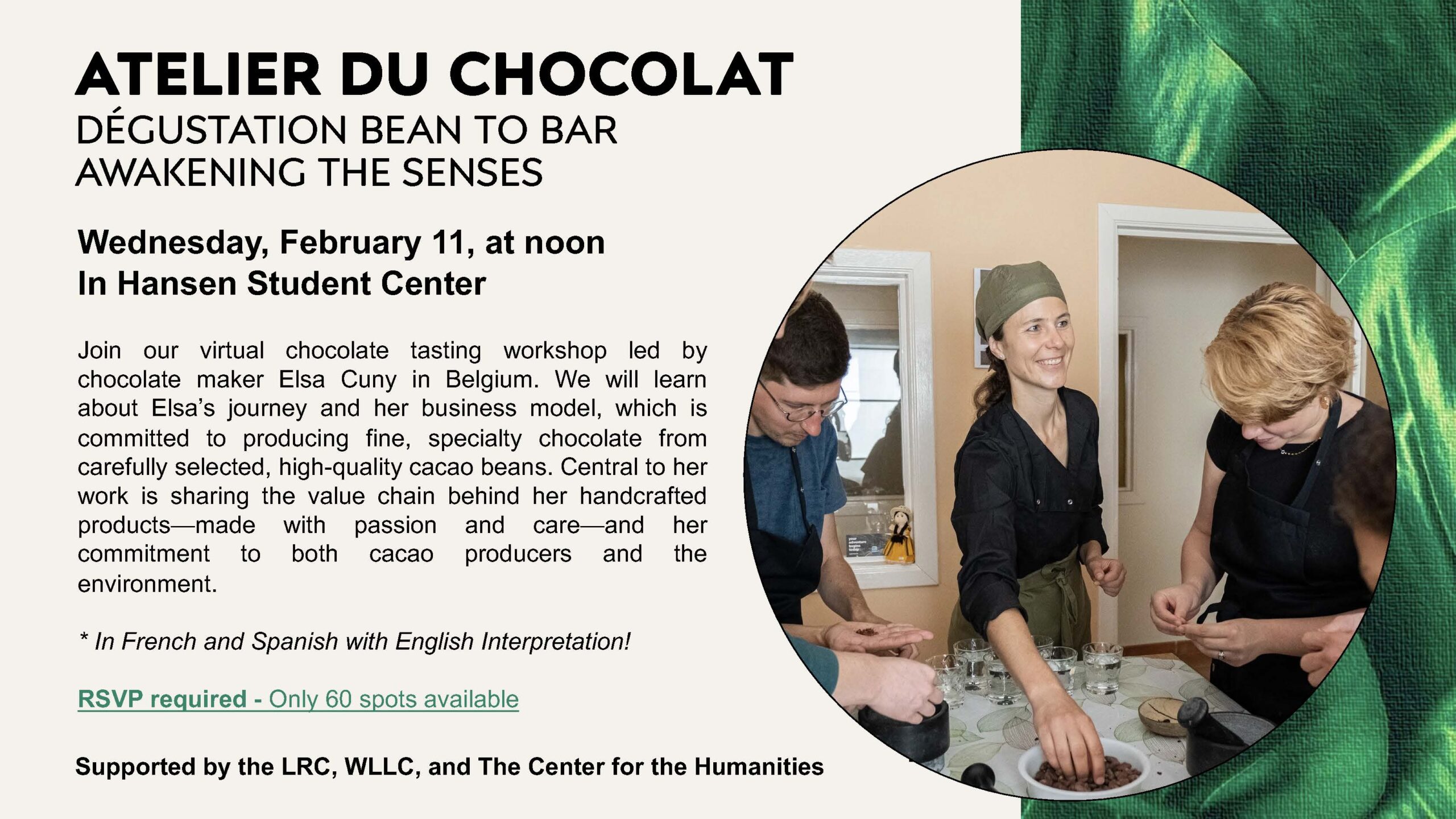 Atelier du chocolat invite February 4, 2026 2560 × 1440 Taller de chocolate en Hansen el 11 de febrero