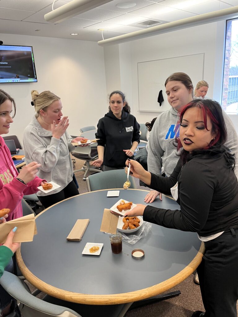 En primavera 2025 la clase Span 307 – Reading and Writing Culture: “La identidad cultural a través de la comida,” experimentó varios momentos culturales a través de la comida, elemento clave para muchas sino todas las culturas hispanas. Entre varias actividades, la clase probó picarones (dulces fritos en forma de anilla hechos con camote [sweet potato]), hizo pan cubano y visitó el mercado Lupita’s donde aprendimos al comer la diferencia entre tacos mexicanos y tacos tex-mex. También los estudiantes hicieron proyectos de investigación fascinantes sobre recetas del s. XVII, el intercambio transatlántico y fenómenos socio-políticos relacionados con la comida.