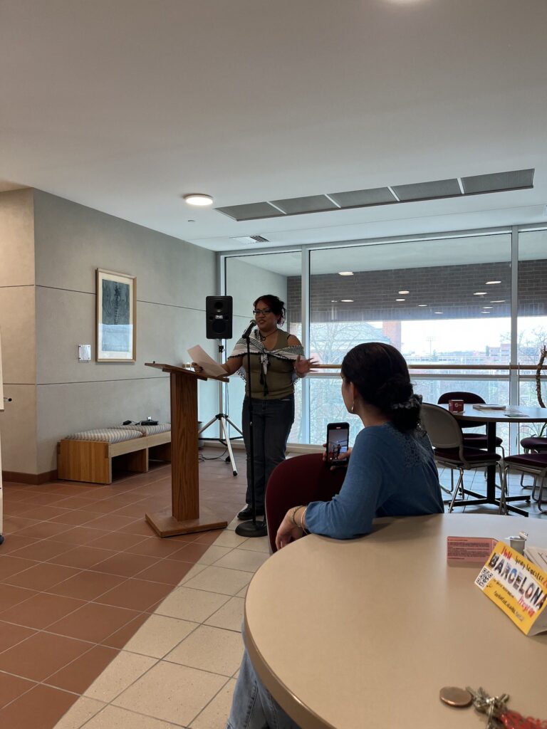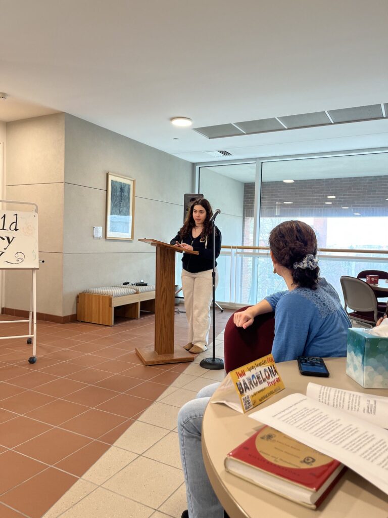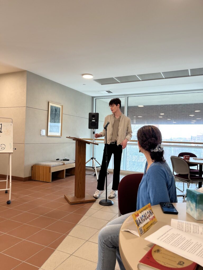 Justo antes de terminar el semestre, el dpto. de World Languages, Literatures and Cultures, organizó una gran celebración para nuestros queridos seniors. Nos juntamos para una comida en la sala Joslin. La profa. Dixon fue nuestra querida anfitriona. Hubo varios reconocimientos incluyendo a MaryBeth Thommes como “outstanding senior”. Alexis Aranda-Hernández fue galardonado con el premio poligloto por sus estudios excepcionales tanto en español como en japonés y Nathalie Romero recibió el premio Technos por sus logros en el campo de estudios internacional y globales. Vamos a echar mucho de menos a todos los seniors! ¡Felicidades a cada uno!